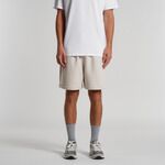 Sweat shorts, self-fabric elasticated waistband, tonal internal drawcord, 2 side pockets, single pocket at back, double needle hems